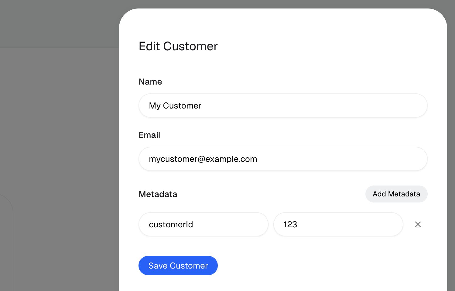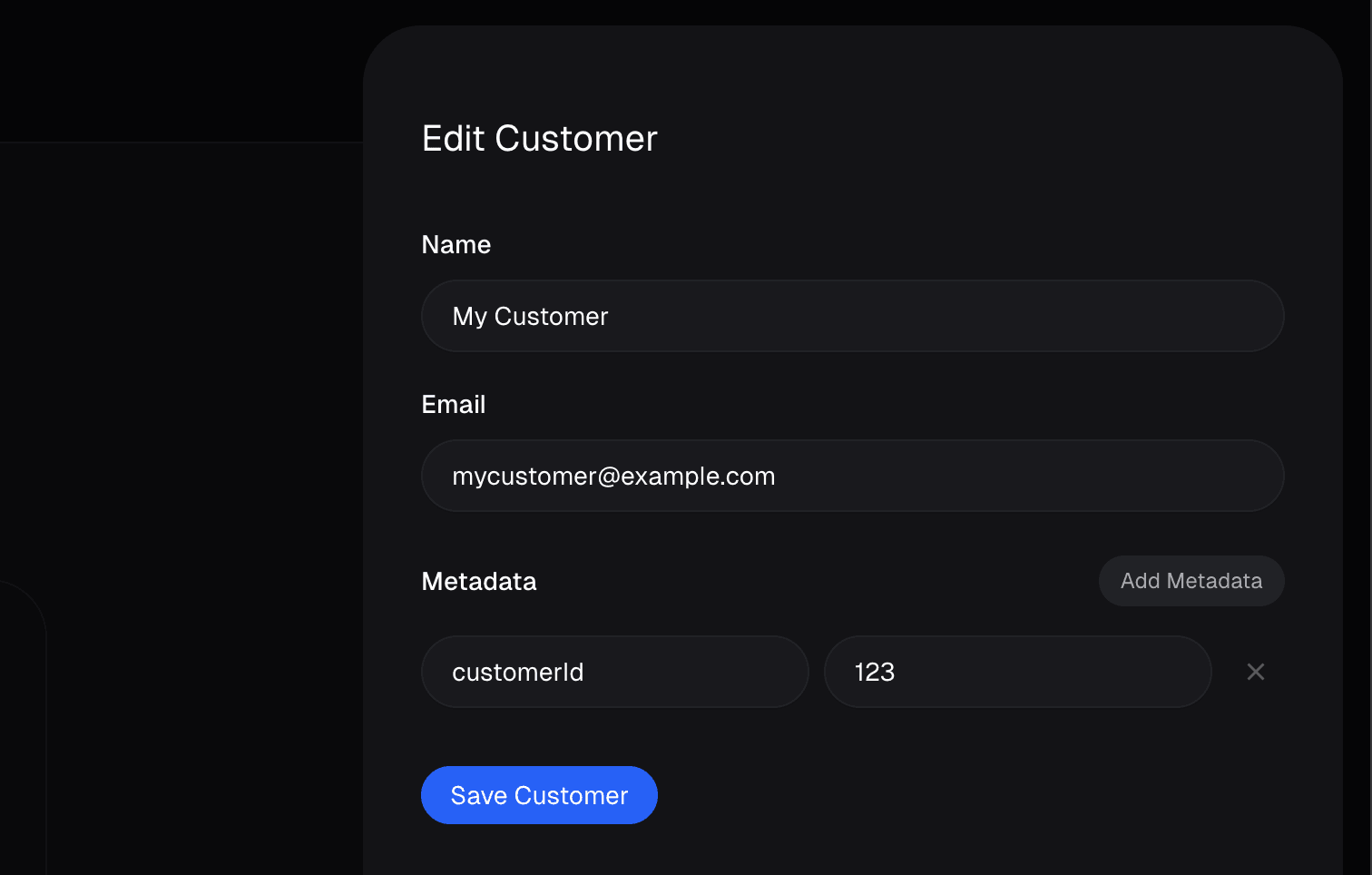 You may set additional metadata on Customers. This can be very useful to store additional data about your customer you want to be available through our API and webhooks.