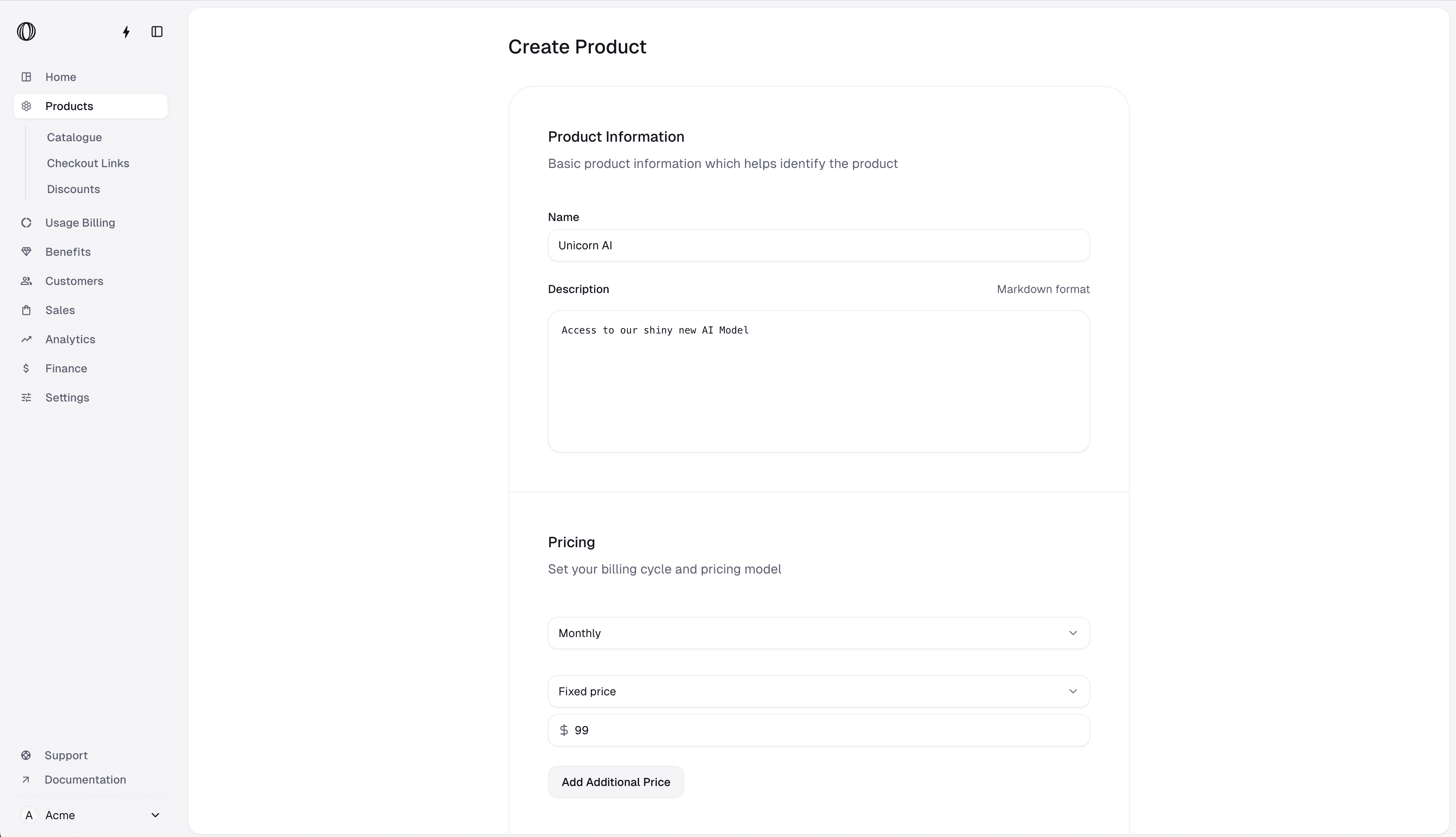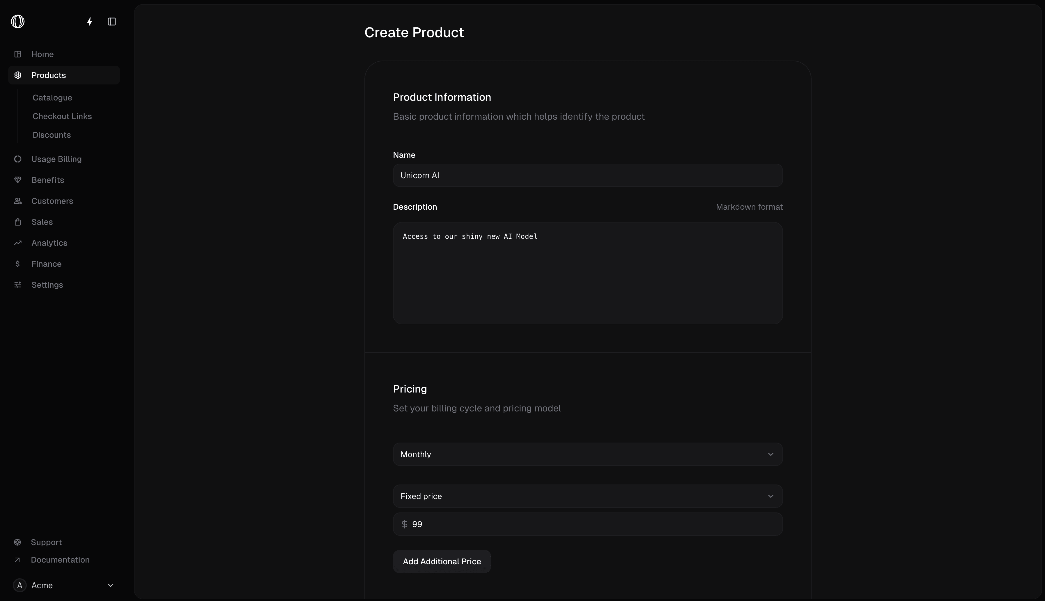 Determine how you want to charge your customers for this product.Billing cycle