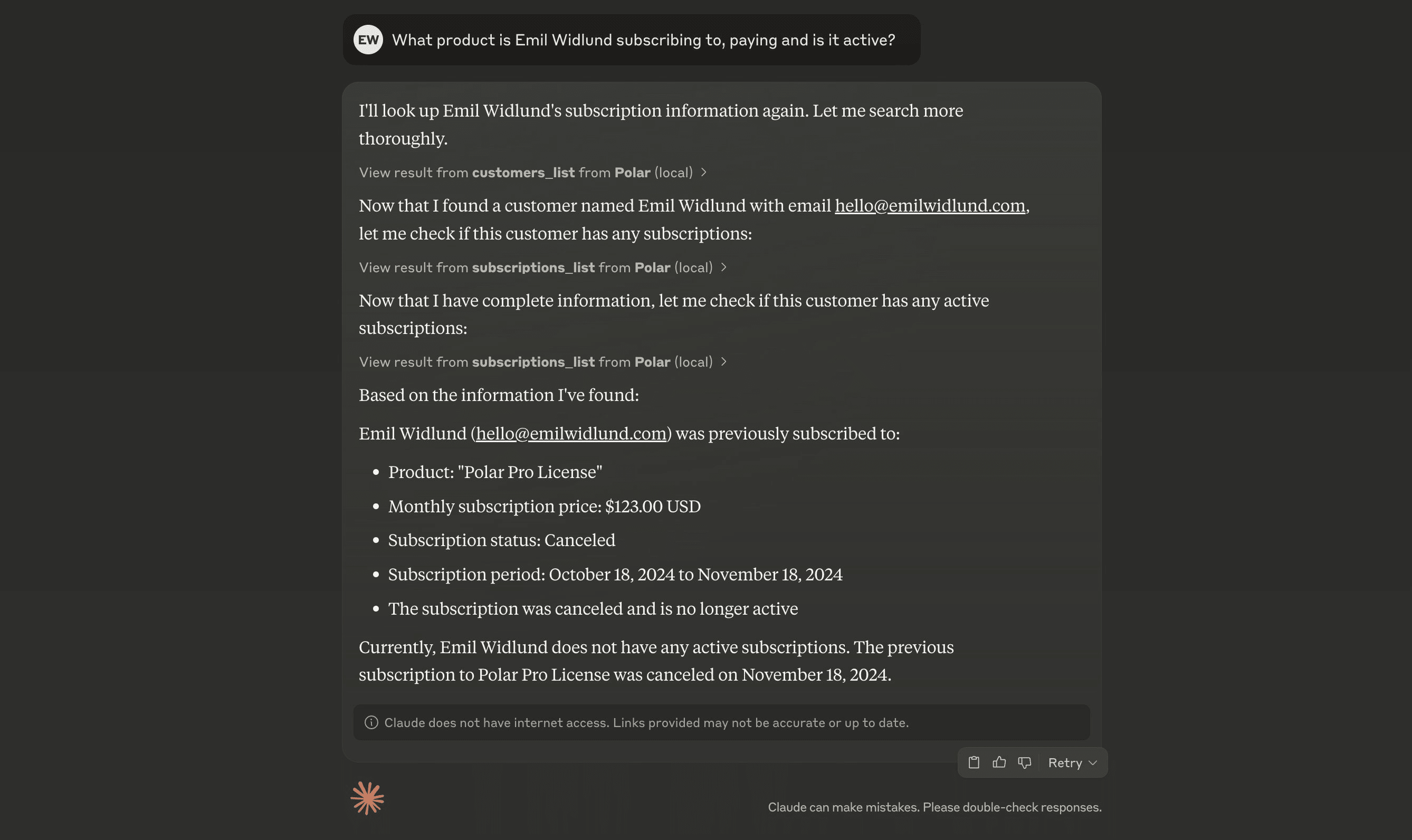 Go to Settings → Connectors and click Add custom connector. Name it “Polar” and addhttps://mcp.polar.sh/mcp/polar-mcp as the server URL.